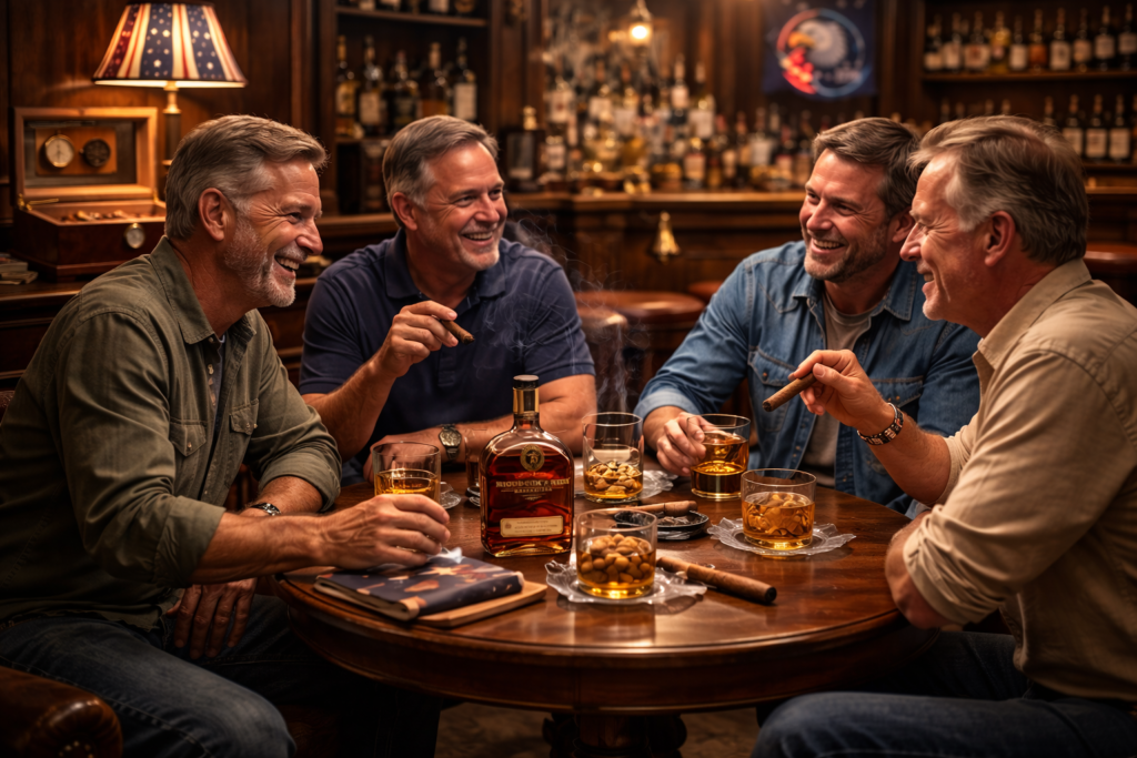 A true Patriot Bar isn’t about showing off. It’s about ritual, respect, and relaxation. It’s where bourbon meets brotherhood, where cigars burn slow, and where the noise of the world gets shut out.