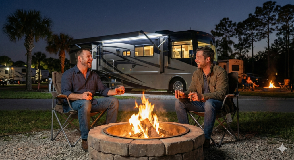 There’s a special kind of camaraderie in RV parks, campgrounds, and outdoor travel spots — especially in Florida. People settle into chairs, the fire crackles, and cigars start glowing in the night.