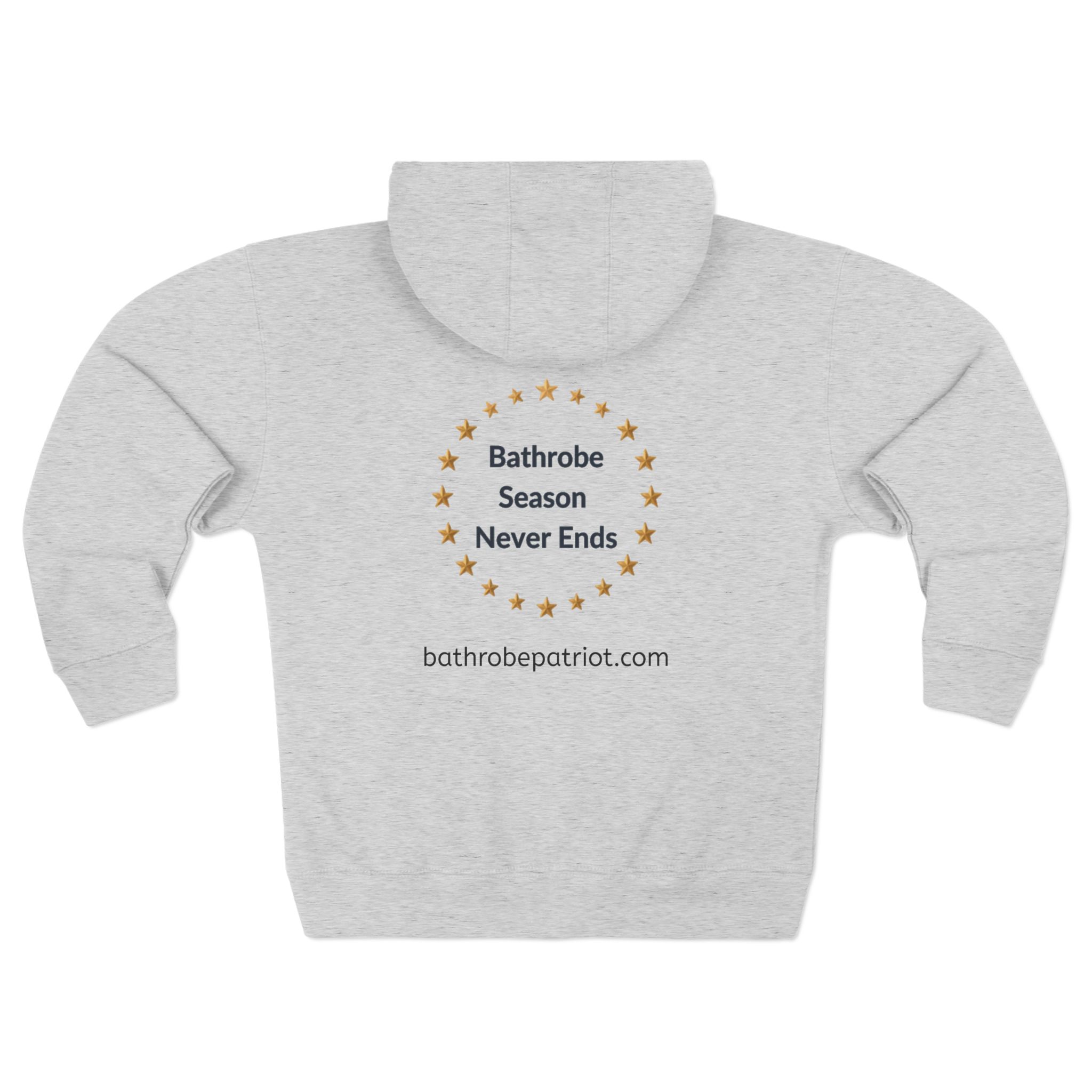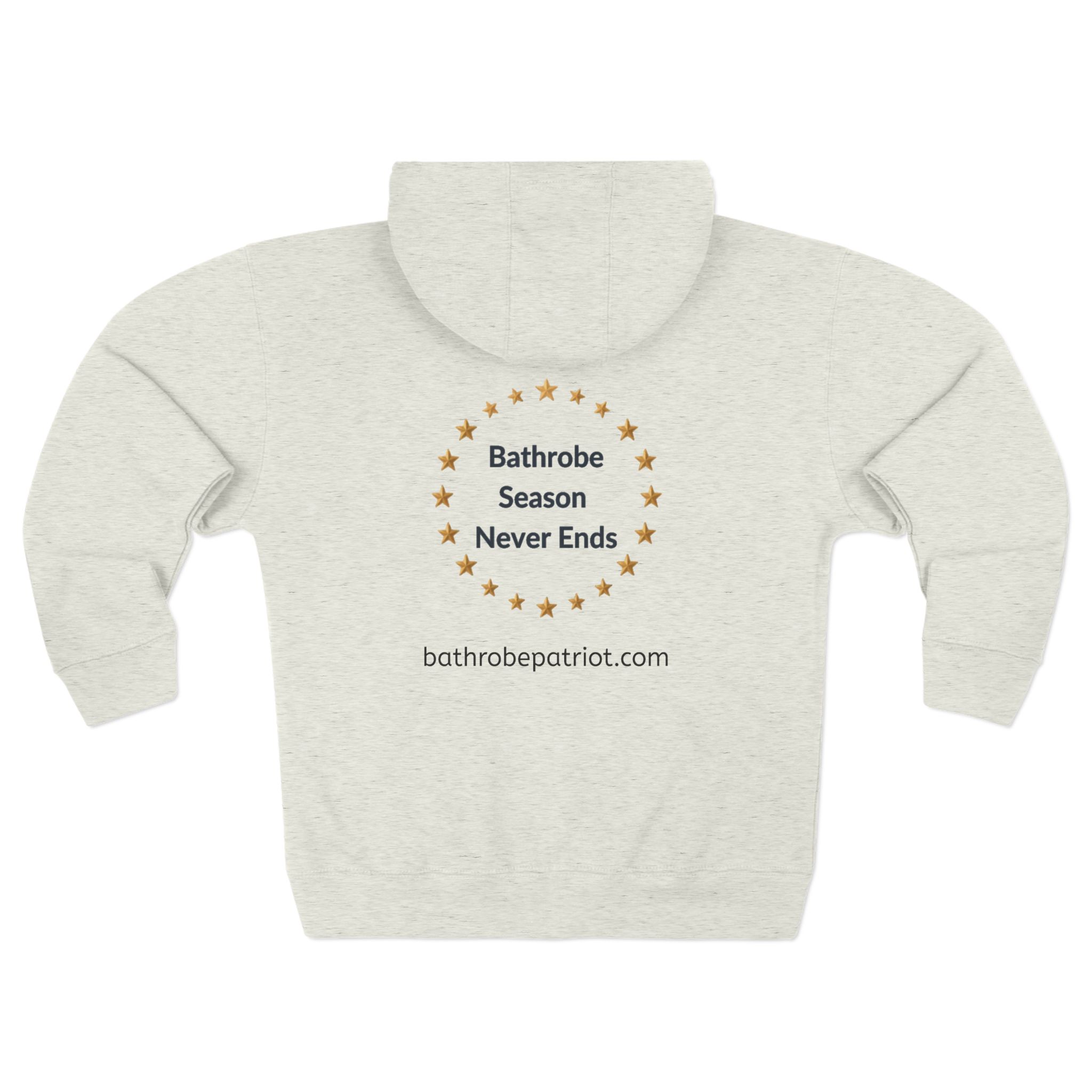 Slide into the slow, cozy rhythm of ‘bathrobe season’ any day of the year. This zip hoodie wraps you in a plush, fleece-lined hood and a roomy kangaroo pocket that cradles cold hands and morning coffee alike. The soft, combed ring-spun cotton blend feels gentle against skin while the medium-heavy fleece holds warmth without feeling bulky. Subtle, high-quality prints sit crisply across chest, sleeves, and back, so the relaxed, bathrobe-inspired message reads like a quiet invitation to linger — whether you’re easing into a slow weekend, stepping out for a brisk walk, or settling in for an evening of reading. Thoughtful touches — a stable neck seam, sturdy YKK zipper, metal-grommeted drawstrings, and a tear-away label — keep comfort front and center. This is the kind of hoodie you reach for when you want comfort that looks lived-in and intentional: familiar, warm, and quietly assured.