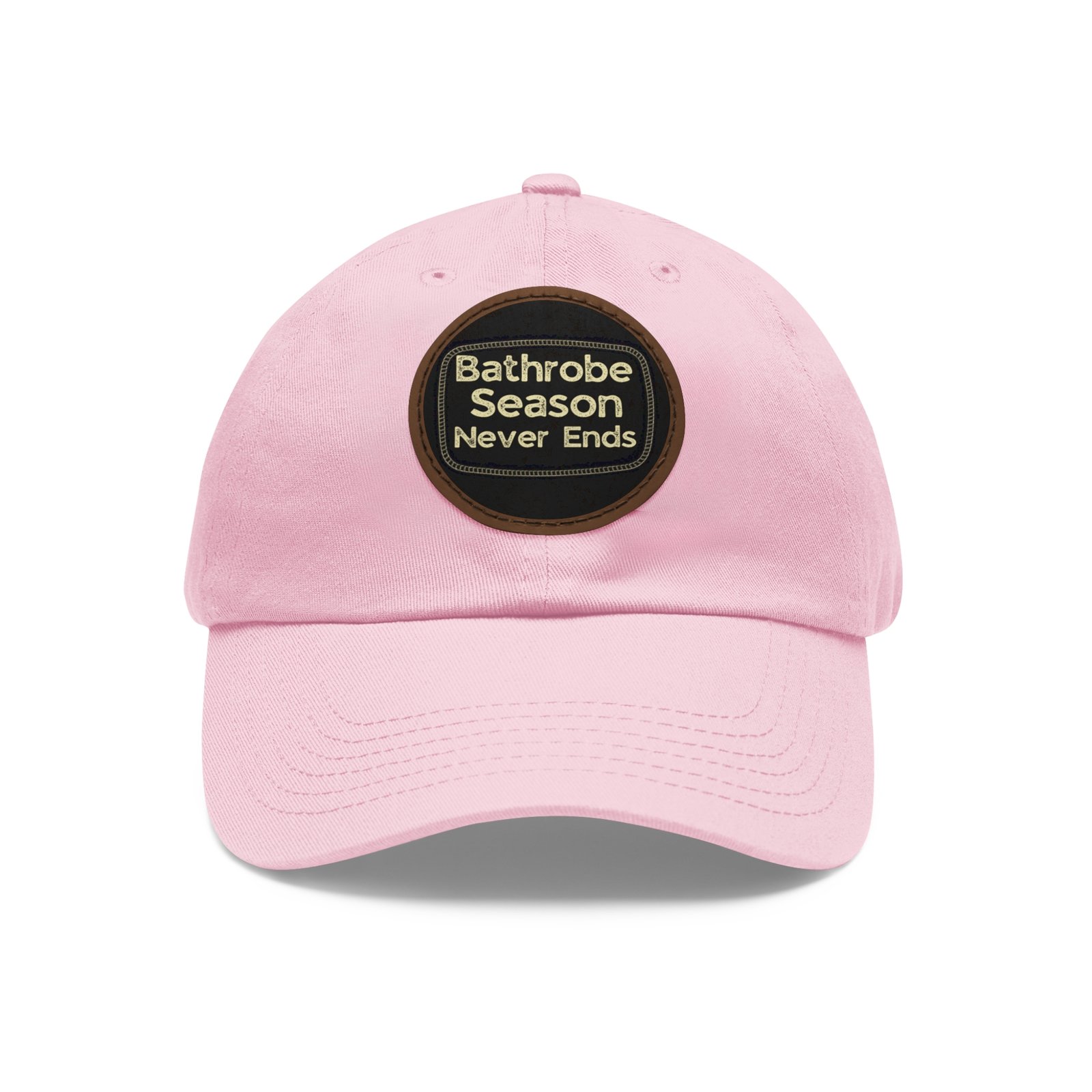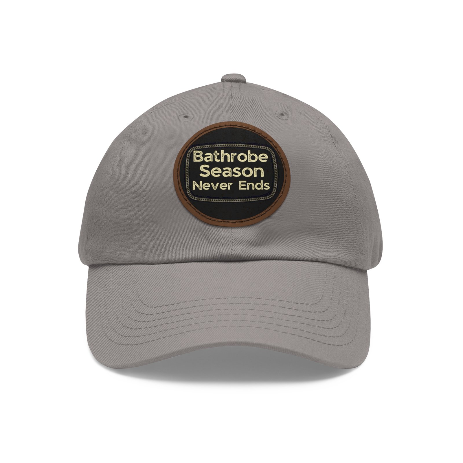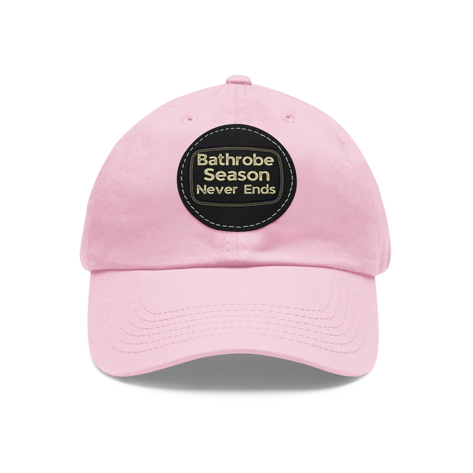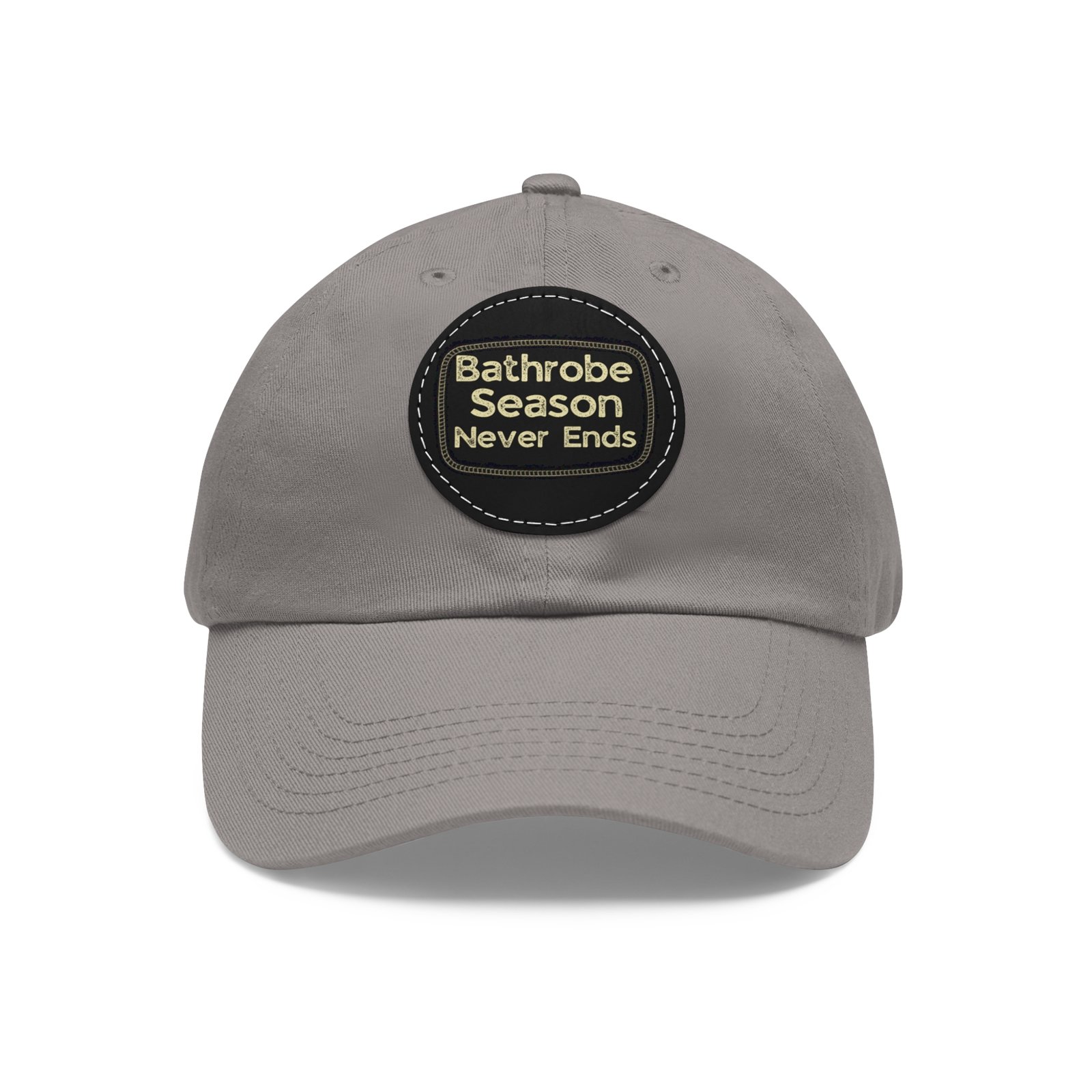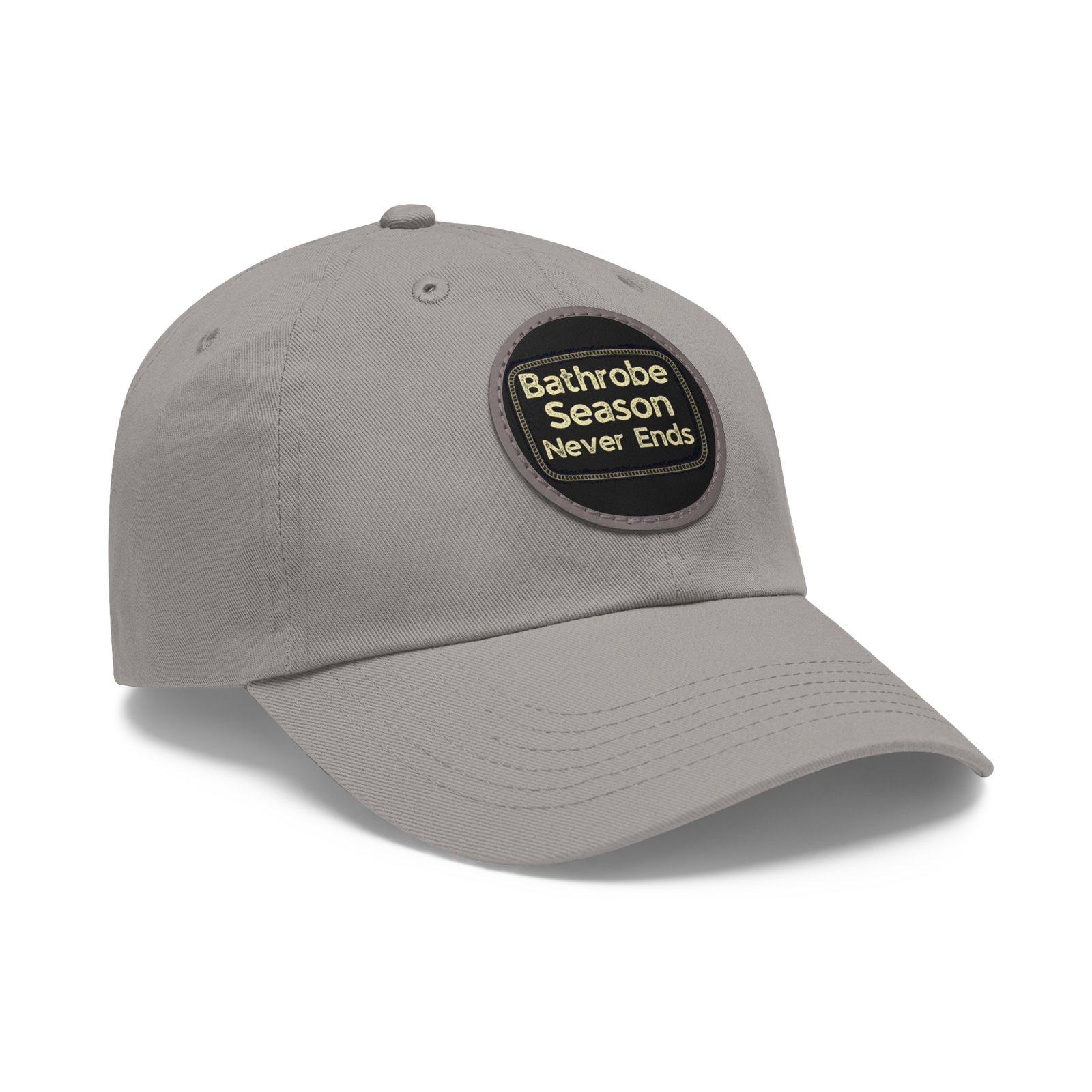 Dad Hat — “Bathrobe Season Never Ends” Leather Patch Cap