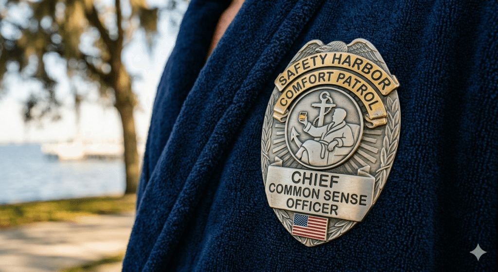 The Bathrobe Patriot lifestyle isn’t just about what you wear; it’s about how you think. It’s about looking at the world with a critical eye, rejecting the nonsense, and embracing the things that actually make life worth living. Safety Harbor is a beautiful place to live, work, and relax. Let’s make it the capital of comfort. If you enjoyed this “mandate,” be sure to share it with your neighbors—just make sure they check the date before they call City Hall to complain!